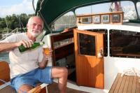 So sah der Niedergang anfangs aus. Die Tür steht im Weg, die Sicht übers Kabinendach ist eingeschränkt. Das Steuer Paneel Motor ist bei offener Tür nicht erreichbar.