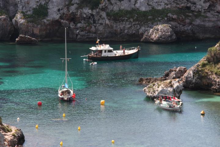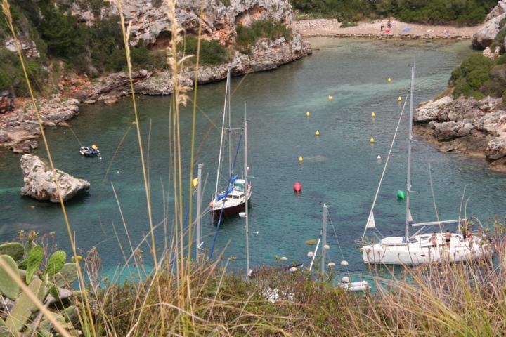 Heute Morgen regnete es recht heftig. So sind wir wieder ins Netz um noch unsere homepage weiter zu führen. Wir sahen wie eine Männercrew, Franzosen, ablegte um weiter zu segeln. Da wir uns die verschiedenen Wetterkarten angesehen hatten wunderten wir uns, denn der Mistral hatte schon über Nacht Wind gebracht zusätzlich zum Regen. Nach nicht 2 Std. waren dieser Segler wieder zurück und an der selben Boje fest, ja warum wohl....? Schadenfreude, oh ja! Gegen frühen Nachmittag wurde es dann doch heller und die Sonne drückte sich immer mehr durch die Wolken. So saßen wir wieder im Cockpit. Wenig später machte Ludwig das Dingi klar und wir starteten zu einer kleinen Rundfahrt in die nächste Bahía. Wir hatten guten Rückenwind. Nur am Anfang der nächsten Bahía war noch ankern möglich, dann wurde es flacher und Sperrbojen lagen aus. An einem Ufer legten wir einen Stopp ein um ein wenig herum zu laufen. Es war alles recht trocken und karg, seltsam denn es hatte doch geregnet? Nun ja bei dem Boden konnte das Erdreich das Wasser nicht aufnehmen. Der ganze hintere Teil der Bucht war als Naturschutzgebiet ausgewiesen. Glücklicherweise, denn sonst würden auch da bestimmt Häuser stehen. Gegen Abend kam ein Paar von einem kleineren Segelboot mit deutscher Flagge zu uns an Bord um Gedanken auszutauschen. Es war interessant was sie erzählten. Sie waren mit ihrem Boot in 2007-08 in der Karibik und schwärmte davon. Inzwischen haben sie einen festen Liegeplatz bei Barcelona und gehen das Segeln nun ruhiger an. Erzählten aber auch, das ihnen hier im Mittelmeer 2x eine Welle ins Cockpit gestiegen ist und die Kabine teilweise unter Wasser setzte. Dieses wäre in den 20 Jahren draußen auf dem Atlantik nie passiert!!! Ja, das Mittelmeer hat es in sich. Wir werden uns sicherlich in Cala Covas, ca. 15sm von Mahon wieder sehen.
