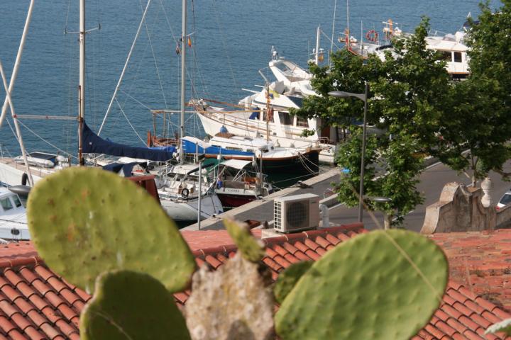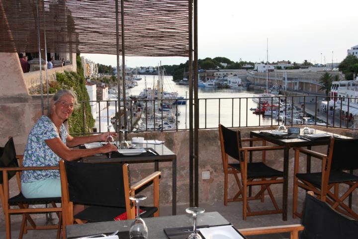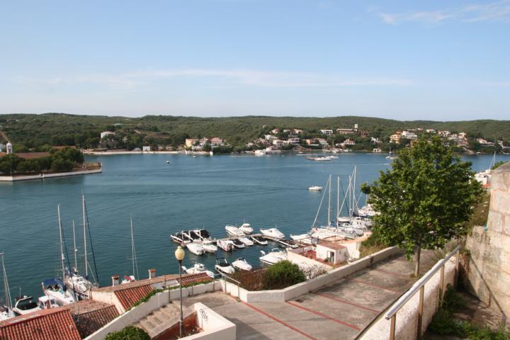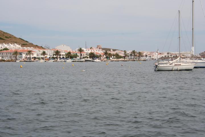 Gegen 10h00 machten wir uns von der Boje los um Richtung Mahon zu fahren. Das Barometer war inzwischen wieder auf 1020 gestiegen. Laut dem DWD sollte es nun ruhiger sein, d.h. die Dünung vom Mistral werden wir sicherlich noch ein wenig mitbekommen. Es war eine sehr schöne Bucht und sind nun gespannt was uns in Mahon erwartet. Draußen auf dem Meer konnten wir das Groß und später auch die Genua setzen. Wie herrlich ohne Motor. Die Geschwindigkeit ließ zwar sehr zu wünschen übrig aber wir hatten ja Zeit. Zumindest für mich war es nicht ganz leicht zu steuern bei nur 9-10kn Wind. Nach ca 2 Std. holten wir die Genua ein das Groß liesen wir stehen. Die Wellen kamen seitlich, so dass wir immer gut geschaukelt wurden. Unser 18 Jahre altes Groß ist recht bauchig und wirkt als Stützsegel wenig. Brauchen bald ein Neues. Wir hofften nach dem nächsten Kap würde es besser werden, aber der Wind kam immer südlicher. Dann sahen wir auch schon ordentliche Schaumköpfe, was war denn das? Wie angeknipst waren auch schon 20kn Wind von vorn. So etwas unberechenbares. Der ganze Zauber dauerte ca. 3/4Std, dann wurde es etwas ruhiger, Erstaunlich wie schnell sich die Wellen aufbauen können. So hatten wir wieder einmal Wellen und Wind gegen uns! Nachdem wir in die Bucht von Mahon kamen wurde die See auch ruhiger und der Wind ließ etwas nach. Wir fuhren bis an die Stadtkaimauer um festzumachen. Wir erkundeten wo und ob man sich melden müsste, keine eindeutige Antwort aber wir brauchten doch Wasser! So fragte ich einen Schiffsnachbarn wie wir zu Wasser kämen und er bot sofort seinen Zugang zum Wasser an. Wir waren eigentlich auf den Weg zum einkaufen, aber so nutzten wir das Angebot. So füllte Ludwig den großen Tank, beim kleinen müssen wir erst noch rauskriegen, warum und wo er leckt. Haben immer mal wieder etwas Wasser in der Bilge. Aber das bekommen wir noch raus. Anschließend ging es zum Einkauf. Es ging den Berg rauf und so hatten wir auch einen schönen Blick auf die Bucht.