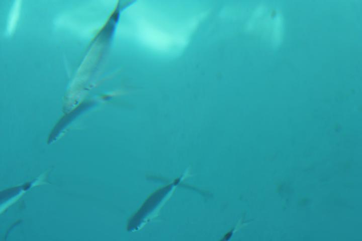 Von Bord aus sah ich einen Fischschwarm unter unserem Boot und machte auch Fotos.Es sah aus wie in diesen Glasbottom boats!