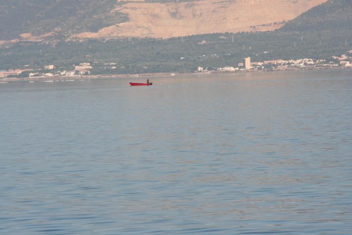 Wir konnten sehen, wie die Fischer tätig wurden. Einer kam recht nahe und legte seine Boje aus um anschließend sein langes Netz ca 100m, auszulegen.
