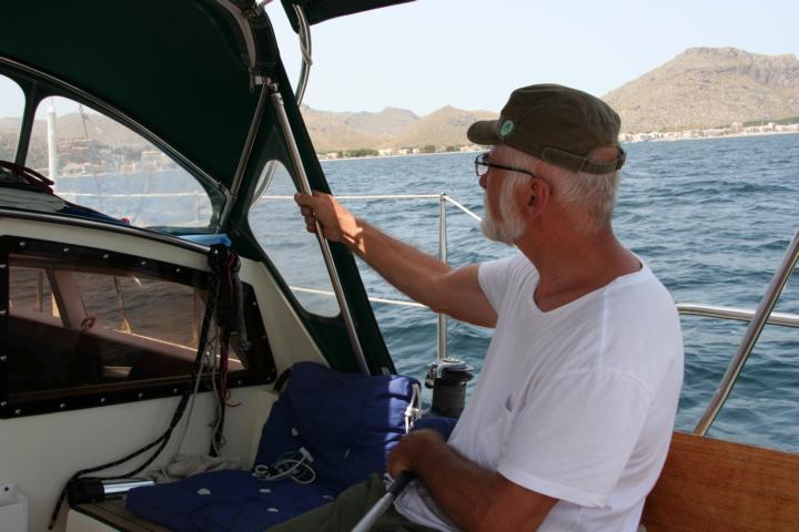 fuhren wir erst einmal in die Bahía um unsere neue Rollfock auszuprobieren. War gut modifiziert und wir glücklich nun gute Segelkleidung für unsere weitere Fahrt zu haben. In der Bucht von Pollenca blieben wir noch 4 Tage. Wie herrlich war es wieder ins Wasser zu springen als es uns zu heiß war. Die Wassertemperatur betrug 27-28°C. An einem Tag fuhren wir wieder in die Bahía um den Kompaß neu zu eichen und vor allem auch unseren neuen Autopilot "Heinrich" zu probieren und auf CACIQUE abzustimmen. Klappte alles prima.