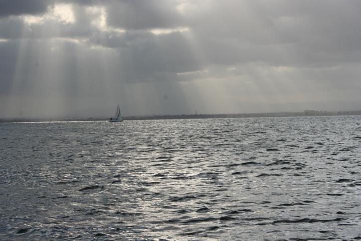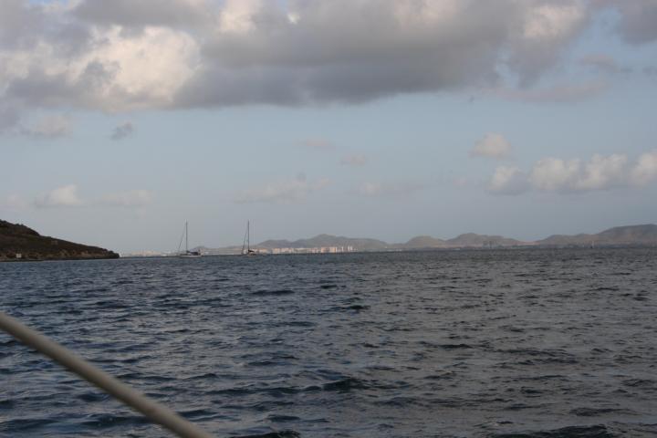 Santa Eulalia besteht aus vielen Häusern mit Ferien Apartments und Hotels. Dort hielten wir uns nur zwei Nächte auf um weiter nach Formentera in eine schöne Ankerbucht zu fahren. Wiederum an Bojen welche vorher angemeldet werden mußten. Diesmal wussten wir wie man sich selbst über Internet anmelden kann, kostenlos. Die nächste Planung war der Törn ans Festland. Wir wollten zum Mar Menor und Alternativ wenn zu starke S - SE Winde vorherrschten, nach Cartagena. (es wurde abgeraten bei zu starken S - SE in den Kanal einzufahren, wegen starker Wellen ). Nach einem langen Törn über 25 Stunden von 160 Seemeilen, kamen wir an den Kanal welcher zur Durchfahrt zum Mar Menor führte. Die Überfahrt war recht ruppig. Der Wind, immer um die 20 Knoten war gut da er aus der richtigen Richtung kam, aber die See mit Wellen zwischen 2,5 bis 3m war etwas anstrengend. Wir hatten den " Levante" erwischt. Winde aus Ost Nord-Ost kommend und 3-4 Tage (oder länger), andauern können - ähnlich wie bei dem Mistral am Golf Du Lion - . Wir kamen